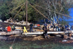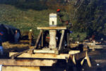 Dès la conception, français et américains ont pris des options différentes tout en conservant le même principe de base. Les américains optent pour un contrepoids fixe et coulent, non sans mal, 6 t de plomb sur place. Renaud Beffeyte, fort de son expérience, choisit le contrepoids mobile, une sorte de caisson en bois qu’il charge de 6 t de terre. Le chantier requiert une cinquantaine de personnes à plein temps. L’utilisation de l’électricité est interdite : sacré challenge !