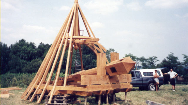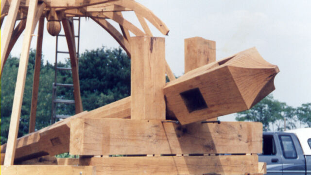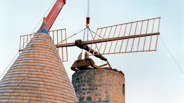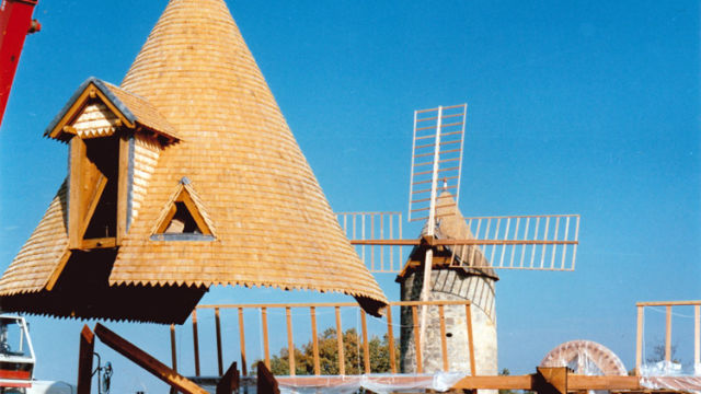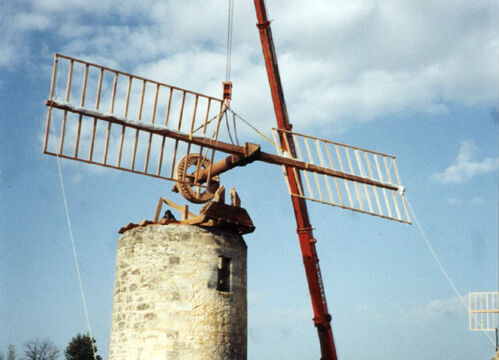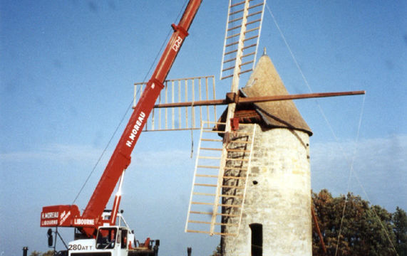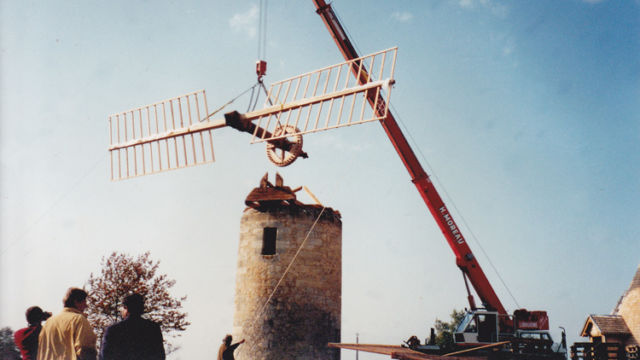 Dès le XVIII siècle, il y a deux types de moulins à foulon : le moulin à façon de Hollande, dont les maillets tombent verticalement dans la pile, et le moulin à foulon traditionnel, ou moulin de France, comme celui de Gaumier. Ce dernier se compose d’un arbre à cames qui, entraîné par une roue motrice au diamètre modeste, laisse retomber alternativement les deux mails contre la pile, aussi appelée « dorme« , où sont déposés les draps. Les maillets de Gaumier frappent en oblique le tissu plié, pour qu’il se retourne naturellement et régulièrement.